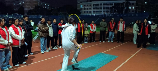 收官之夜,支部副书记宋靓雯老师带领的热身操率先点燃现场气氛。社体学生第一支部成员全程坚守在赛事组织、安全保障等岗位,以专业服务展现了学生党员的担当,成为活动中一道亮眼的“红色风景线”。