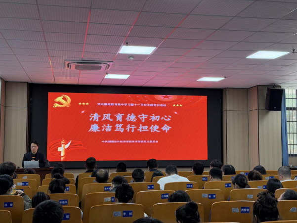 2025年11月14日下午14:00,我院组织全体教职工开展集中学习活动,由体育学院院长谢明主持。此次学习活动以“清风育德守初心 廉洁笃行担使命”为主题,创新性地将党风廉政建设要求与师德师风教育深度融合,同时加入反腐警示教育环节,为学院教职工队伍建设注入廉洁新动能。