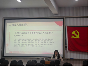 王真老师强调,党员发展流程是保证党员质量的制度基石,每一个环节都承载着党组织的严格要求与殷切期望。她结合实际案例细致解读政策细节,针对材料准备中的常见问题给出具体指导,引导学员们深刻认识到“程序合规是政治合格的前提”,进一步端正了入党动机,强化了纪律意识。整场课程既有政策解读的专业性,又有实践指导的针对性,学员们专注聆听、认真记录,互动交流中不时迸发思想共鸣。