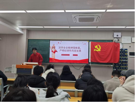 2025年12月18日中午12点在第四教学楼各支部指定教室,湖南涉外经济学院体育学院党总支以 “深学全会精神强根基,严明纪律作风促发展” 为主题,系统部署各支部进行主题党课学习与实践工作,推动全会精神落地生根、开花结果。