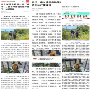 2025年10月9日,湖南涉外经济学院体育学院社会体育指导与管理专业2507班的学生文佳仪与母亲在户外散步时,意外发现一只疑似受伤的鸟类。凭借日常校园生态保护教育中积累的知识,她初步判断该鸟类外形特殊,可能属于受保护物种,遂第一时间停下脚步,避免对其造成二次伤害,同时迅速联系当地县林业局,详细说明发现地点及鸟类特征。