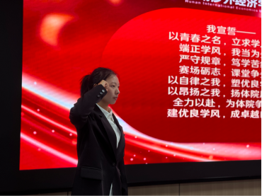 最后,全体学生在刘佳贝同学的带领下庄严宣誓,表达了投身学风建设的坚定决心。此次动员大会为营造勤学善思、积极向上的育人环境奠定了坚实基础,标志着体育学院学风建设月活动正式全面展开。