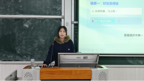 “真没想到,连‘朋友借钱’都可能是骗局!”现场参与同学感慨道。PPT中设置的“灵魂拷问”情景互动环节,例如“好友线上借钱,你会立即转账吗?”以贴近现实的情境,使大家直观认识到诈骗手段的隐蔽性与迷惑性。
