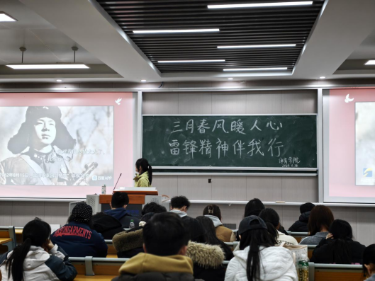 组织部干事黄紫依围绕雷锋精神内涵与新时代价值发表讲话,强调雷锋精神是严谨求实的学风、开拓创新的校风和奉献担当的社会风尚的集中体现,号召全体同学以行践知,将雷锋精神转化为服务他人、奉献社会的实际行动。提倡同学们走进校园、社区与敬老院,开展清洁美化、敬老陪伴、文明劝导等志愿服务,用点滴行动传递温暖,让雷锋精神在实践中闪光。