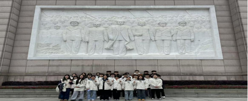 活动伊始,全体成员在雷锋纪念馆广场集合,于镌刻着“向雷锋同志学习”标语的纪念雕塑前整齐列队,合影留念。同学们身着统一服装,神情肃穆,用一张集体合影定格下本次红色学习之旅的开端。这张合影不仅记录了活动的起点,更象征着全体成员追寻榜样、践行精神的坚定决心,表达了对雷锋同志的深切敬意与缅怀。