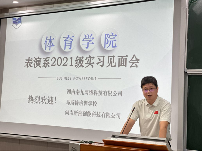 2024年9月11日中午,我院表演系2021级实习见面会在四教103教室举行,谢明院长、表演系主任曾明、副主任杨树、21级辅导员李术容以及实习指导老师刘文彬、潘铭瑶、贺婷婷、崔子豪等悉数到场,此次见面会由表演系系主任曾明组织,旨在为即将进入实习阶段的学生们提供明确的指导和方向。