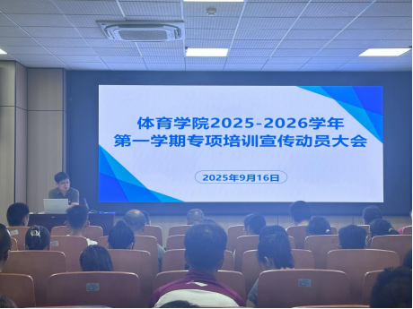 为进一步提升教师综合素养,夯实教学质量根基,9月16日中午,我院于体育馆学术报告厅组织召开2025-2026学年第一学期专项培训宣传动员大会。学院领导班子成员及全体教师参加会议,会议由谢明院长主持。