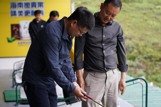最后,教练团来到室外高尔夫球场。在专业教练指导下,永州的教练们轮流握杆、挥杆,亲身体验高尔夫运动的技巧与乐趣。来自江永县的一位教练感慨道:“没想到民办高校的高尔夫专业能做到这样的水平,学生在这里可以学到实用的技能。”