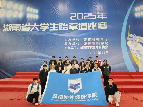 2025年11月24日至30日,由湖南省教育厅主办、湖南警察学院承办、湖南省学生体育协会协办的2025年湖南省大学生跆拳道锦标赛圆满落幕。本次赛事汇聚全省56所高校的982名运动健儿同台竞技,我校跆拳道代表队选派26名学子参赛,凭借扎实的技术功底与顽强的拼搏精神,在赛场上屡创佳绩,最终收获1金7银8铜、8个第五名的优异战绩,同时斩获品势项目团体总分第一名、竞技项目团体总分第二名,为学校赢得了荣誉。