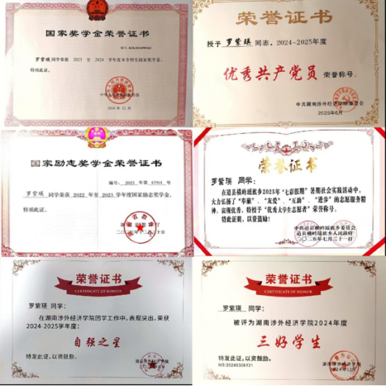 作为学生骨干,罗紫瑛始终以服务集体为己任。她累计荣获8次优秀学生干部、3次优秀共青团干部称号,并所带领的班级获评“五四红旗团支部”和“先进班集体”。组织班级篮球、足球、羽毛球等体育赛事,开展干部工作指导与班级团建活动,参与学校第七次学生代表大会,组织国家职业救生员培训……在每一个岗位上,她都以饱满的热情和强烈的责任心,凝聚起班级的向心力,成为老师的得力助手、同学的贴心伙伴。
